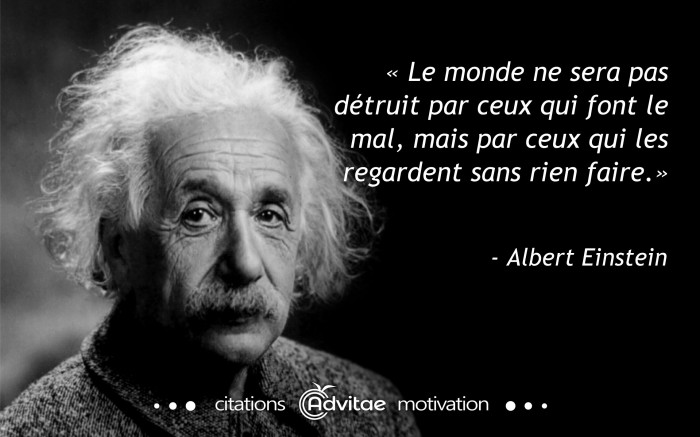 Le monde ne sera pas détruit par ceux qui font le mal, mais par ceux qui laissent faire